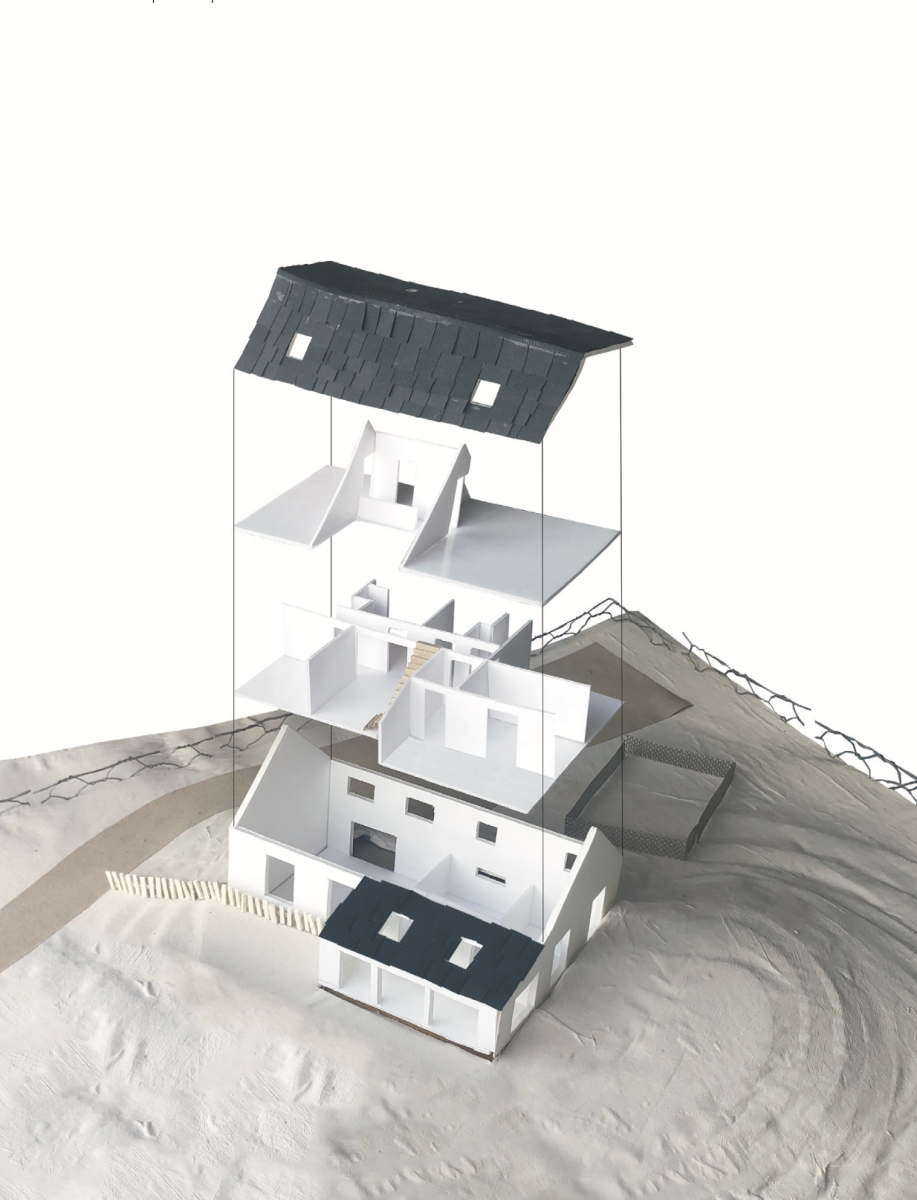 Nous pensons cette structure comme le support d’une bibliothèque des savoirs, un témoin de la construction du collectif et de la démarche de réhabiter de David, Mat, Ptit Ben, Ludo et Benoit puis des 5 futurs habitants. Ici, entre autres choses, nous proposons : un sauna pour se détendre, une serre pour le projet de permaculture de David, des terrasses dans les hauteurs pour combler les envies de grimpe de Mat et Ptit Ben, un atelier pour Ludo et Benoit…