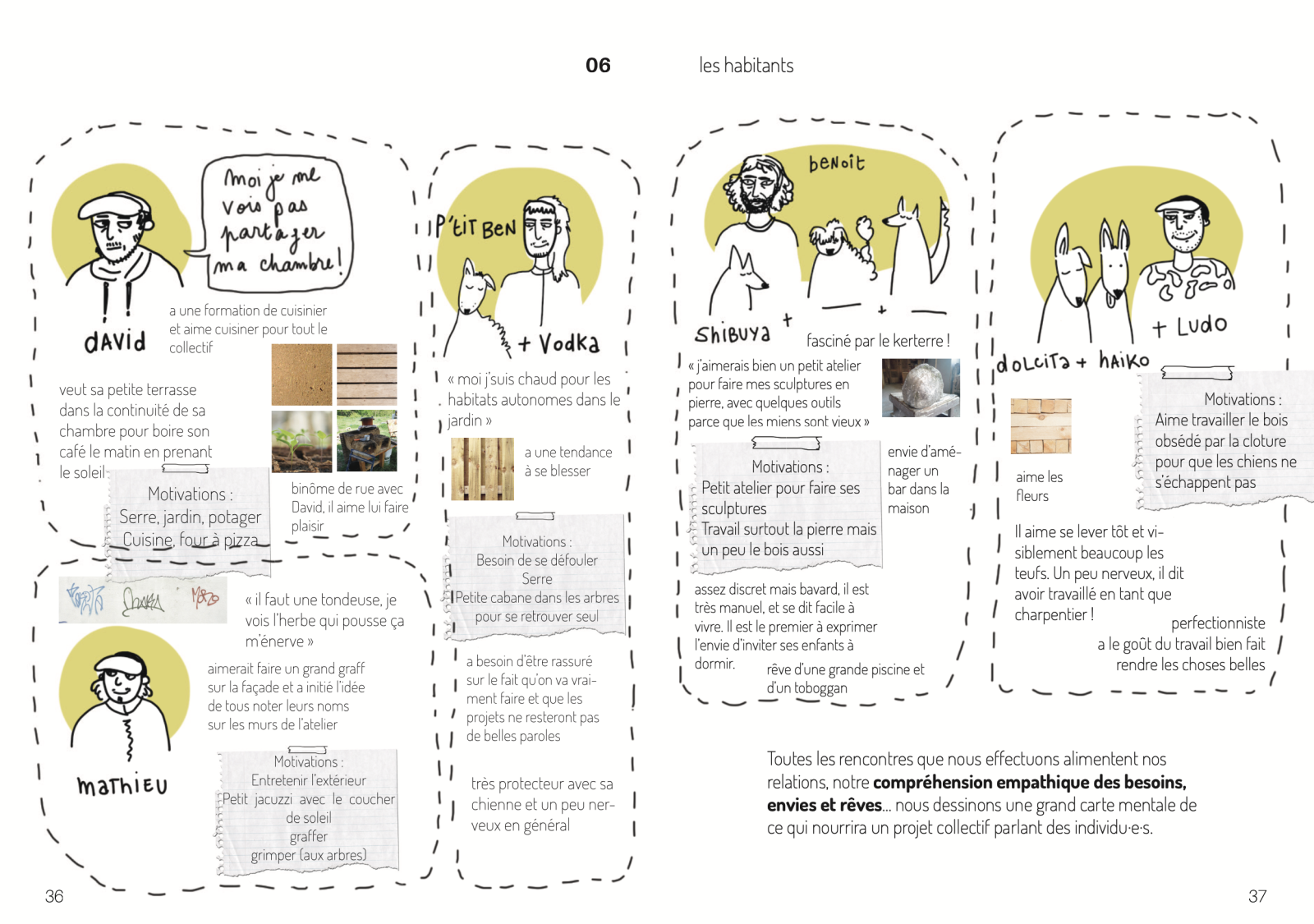 Ces rencontres nous permettent de définir que le premier geste à construire est collectif, que chacun des habitants doit pouvoir y déposer de soi et construire avec les autres quelque chose d’intime en collectif . Car si nos visites ont bien quelque chose de palpable, c’est leur effet sur l’entente entre les colocataires : à chaque début de journées, les tensions sont souvent lourdes, avec un gestion de la colère compliquée à apaiser. Mais si nous quittons Cesson à chaque fois complément rincés, les gars, eux, ont retrouvé le sourire et parlent ensembles des belles choses qu’ils vont accomplir dans la maison.